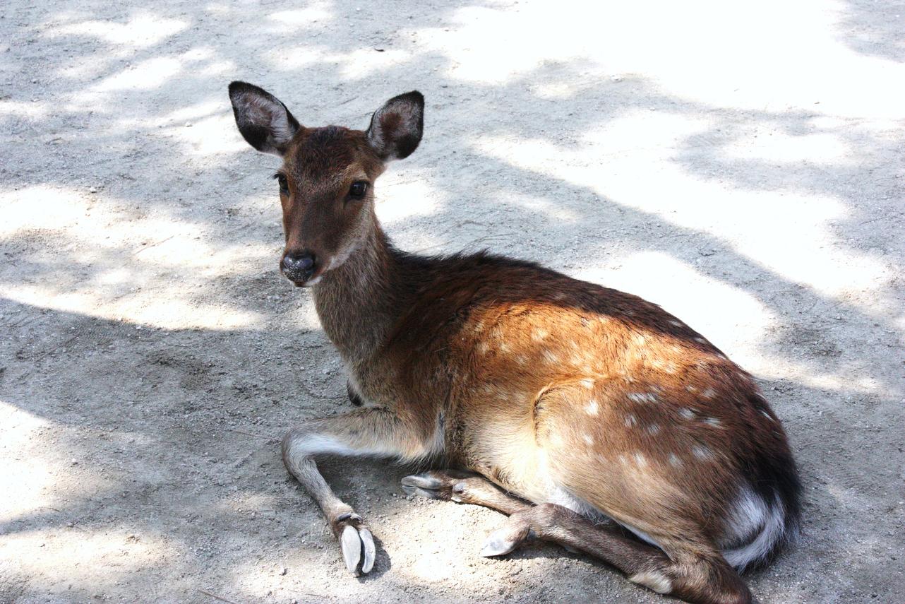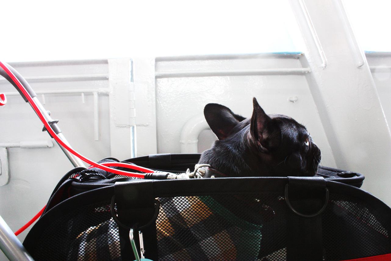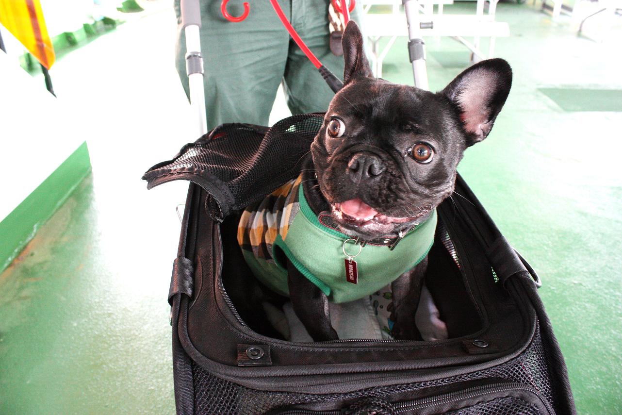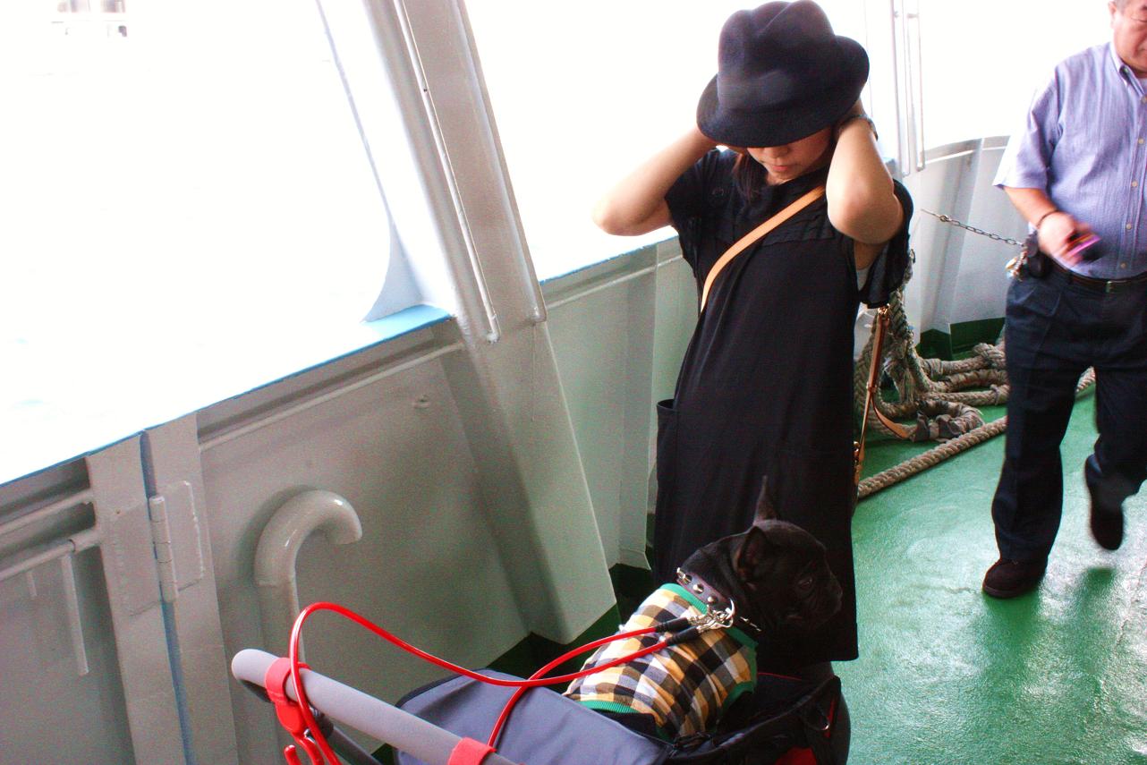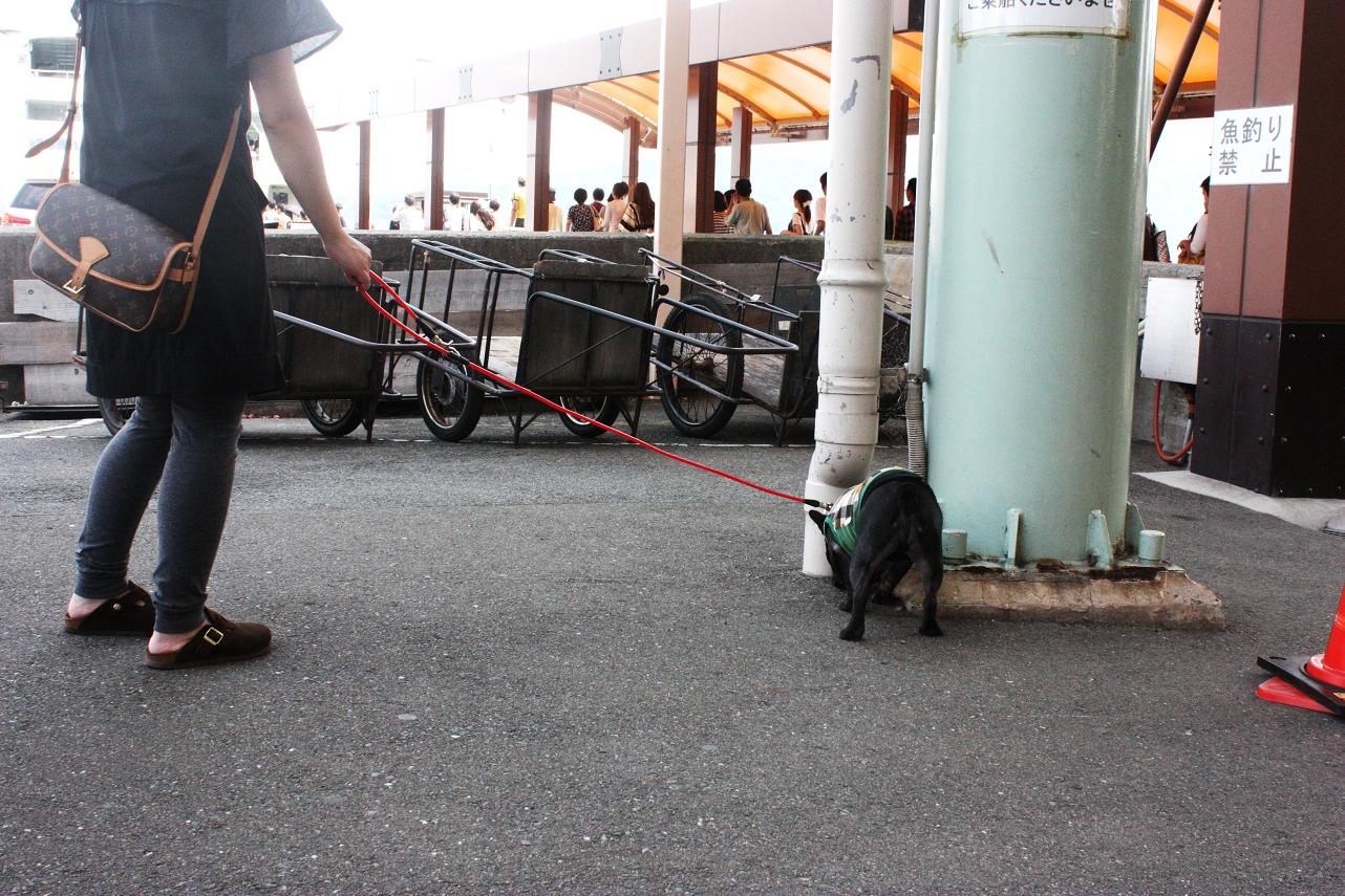 フェリーで戻り、ずっと乗ったままの茂吉を日陰で軽く歩かせました。
