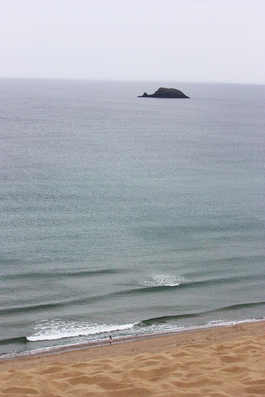砂丘頂上から見下ろすと、その先に海が広がっていました。