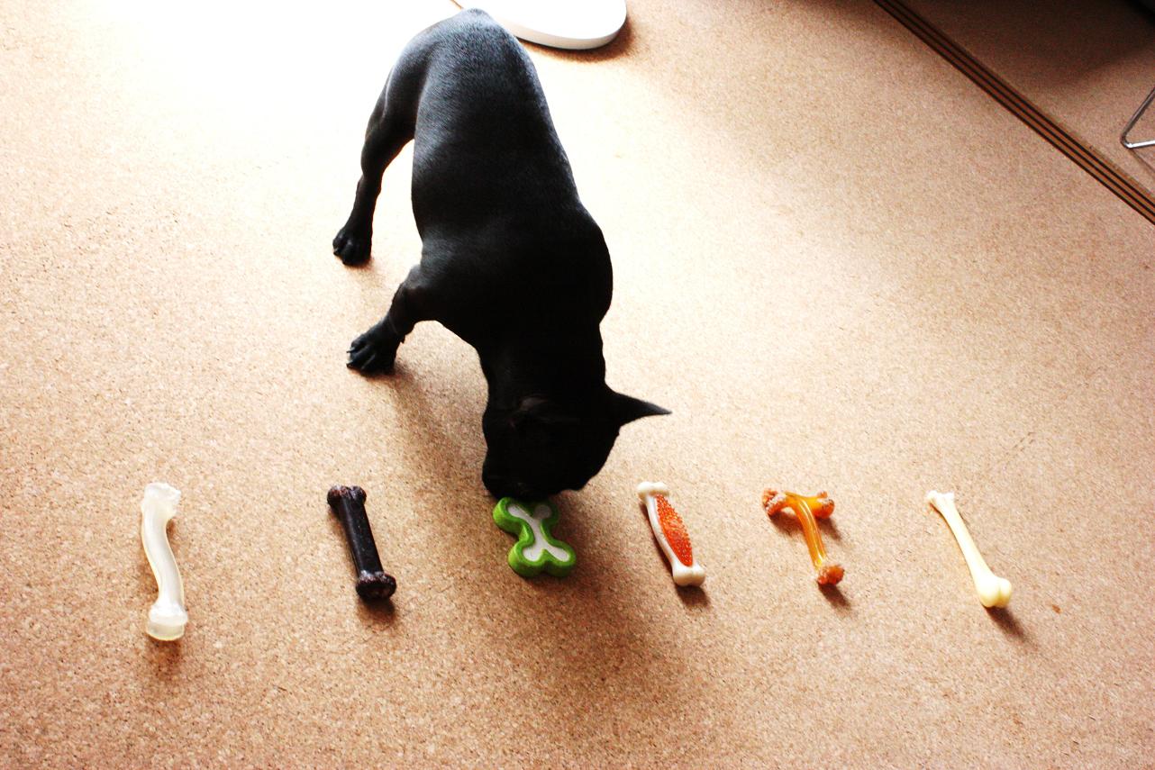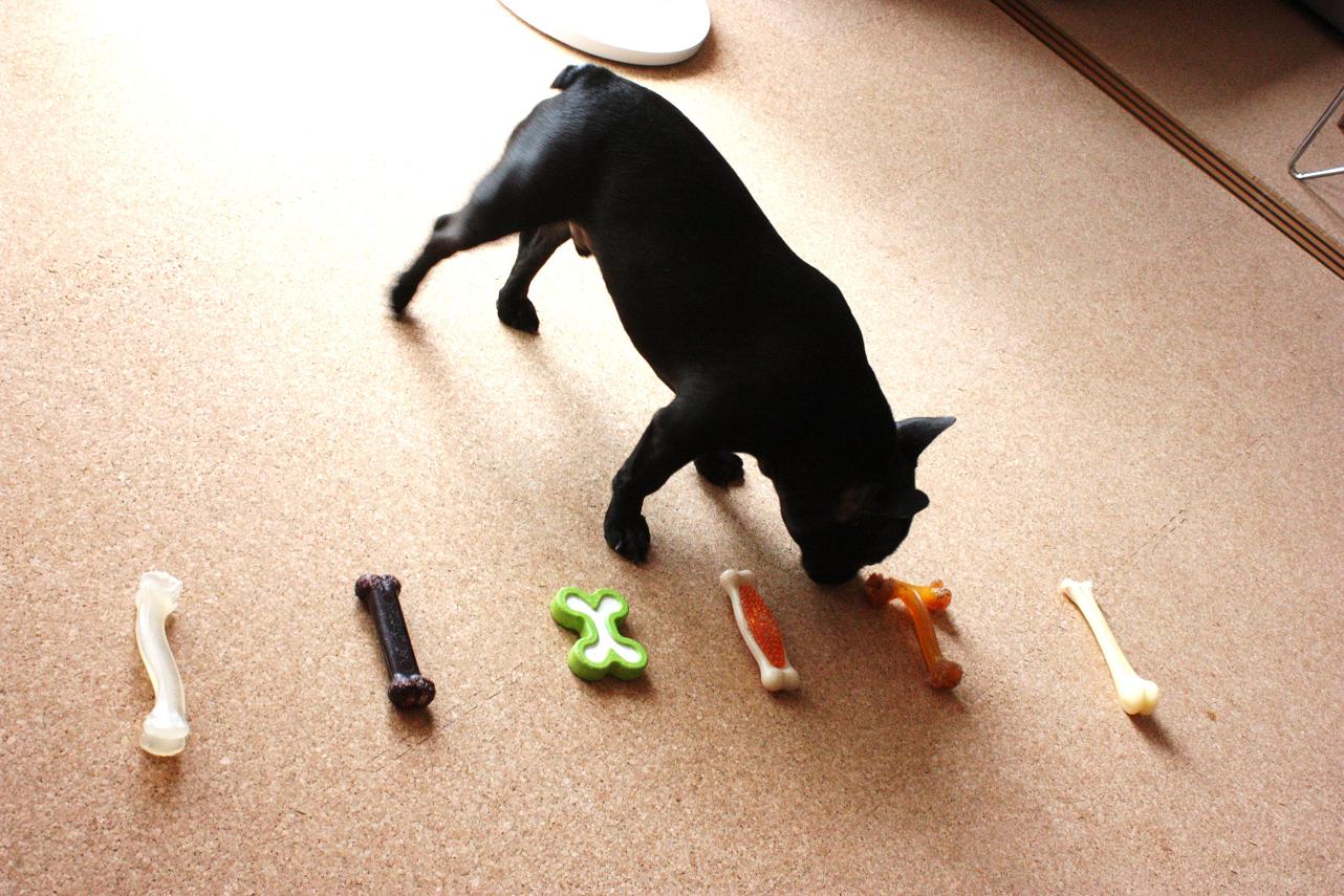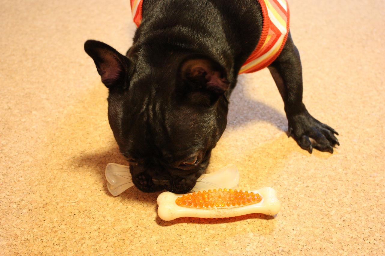 散らばるボーンには見向きもせず、コレに食いつきます。