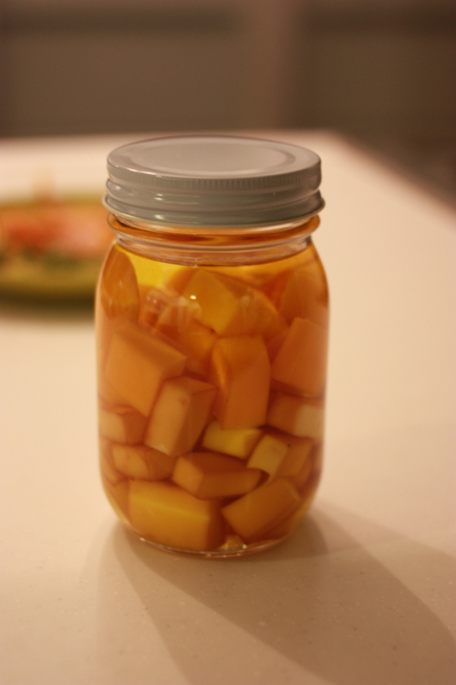 小さく切って、オリーブオイル漬けにしてみたよ。