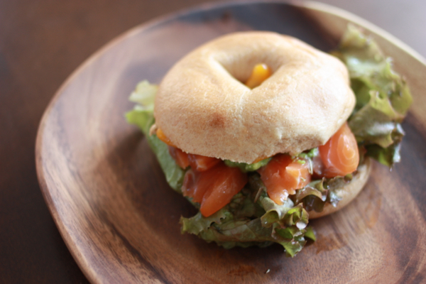 残ったスモークサーモンで、ベーグル!