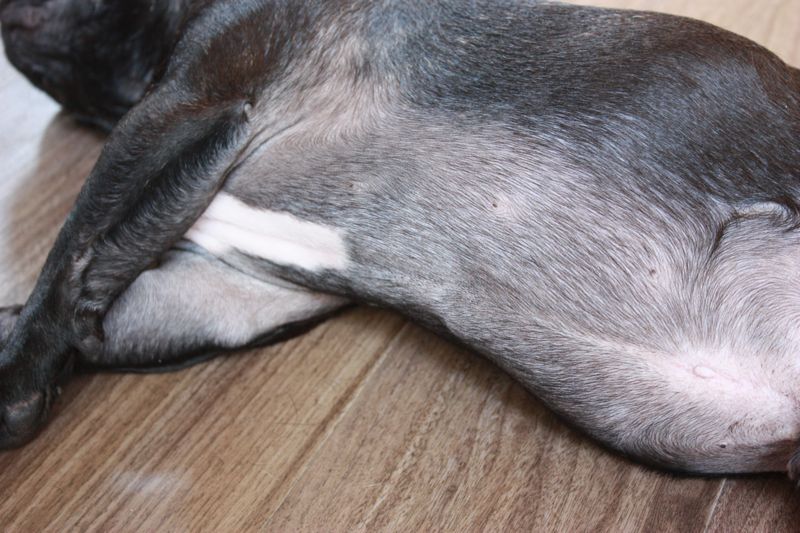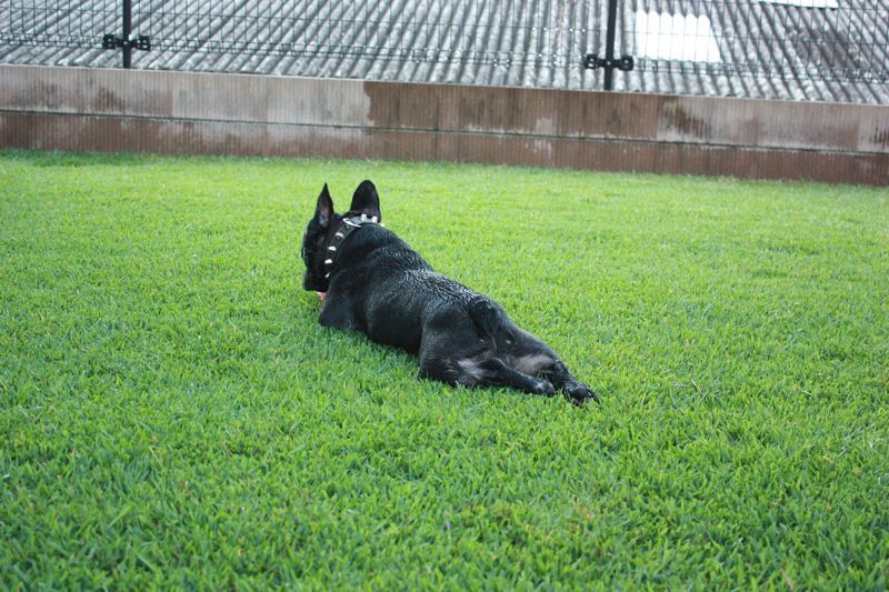 疲れたり暑くなると、こうやって寝そべって自分で休憩してます。