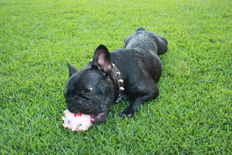 休憩中、ボールをカジカジ…すぐにボールが壊れるんだよね(泣)
