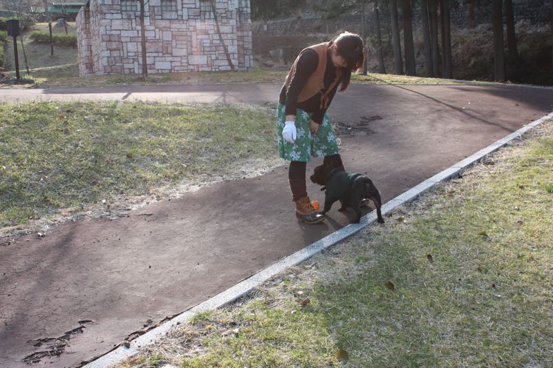 川沿いをどの辺りまでいくか、で散歩の距離を変えるんだけど…