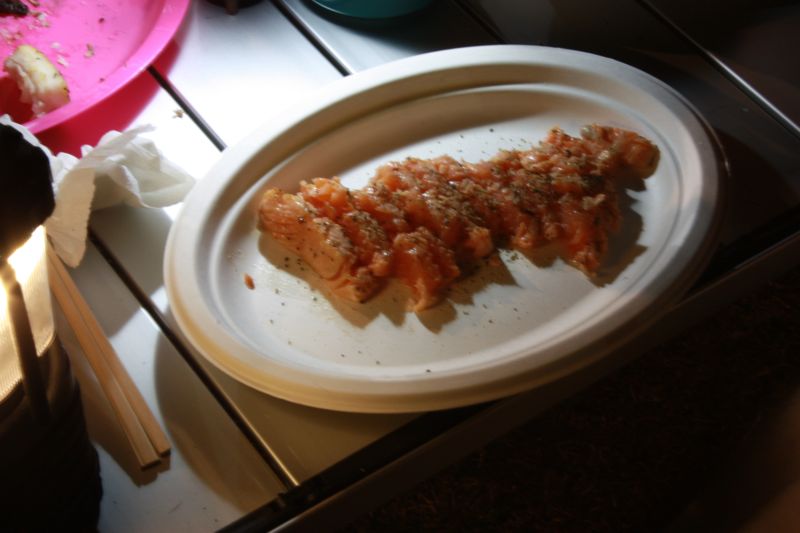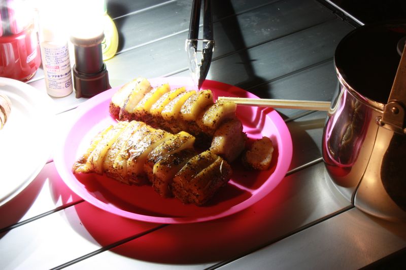 リンリンさんお手製の、ハーブ塩に漬け込んだ豚。