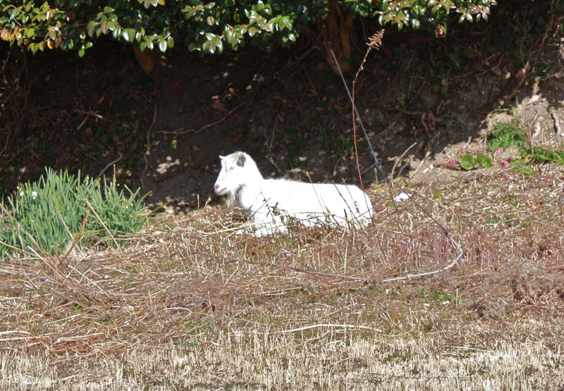 このヤギはキャンプ場近くの道ばたにいました。