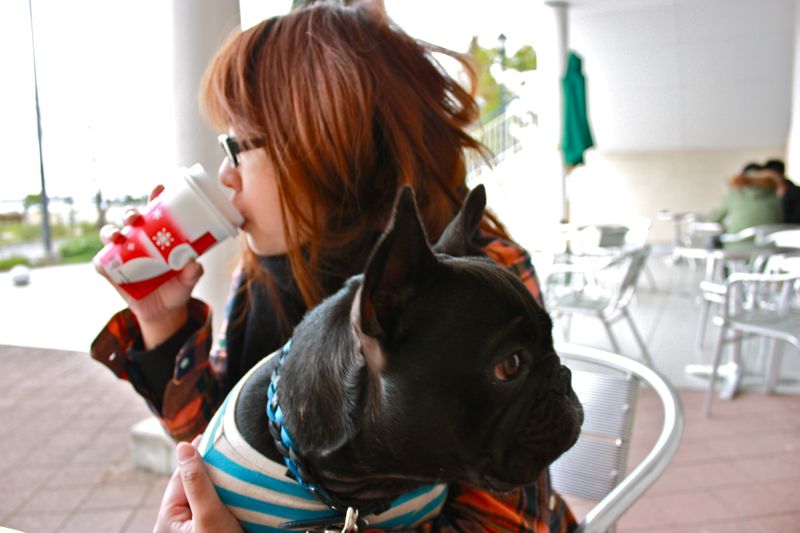 風が強くて寒い外で延々茂吉と待たされ、不機嫌な私(笑)