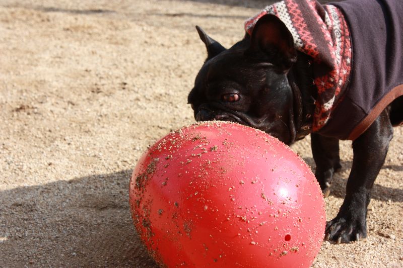 中には怖がって、ボールに向かって吠えてるだけの犬もいるとか(笑)