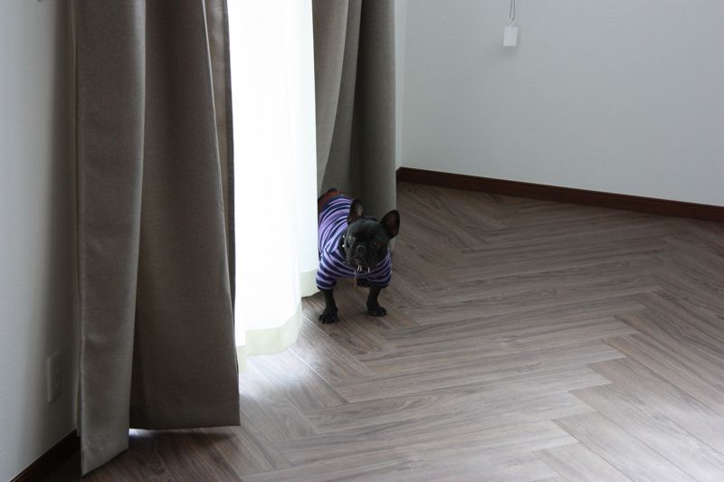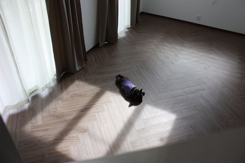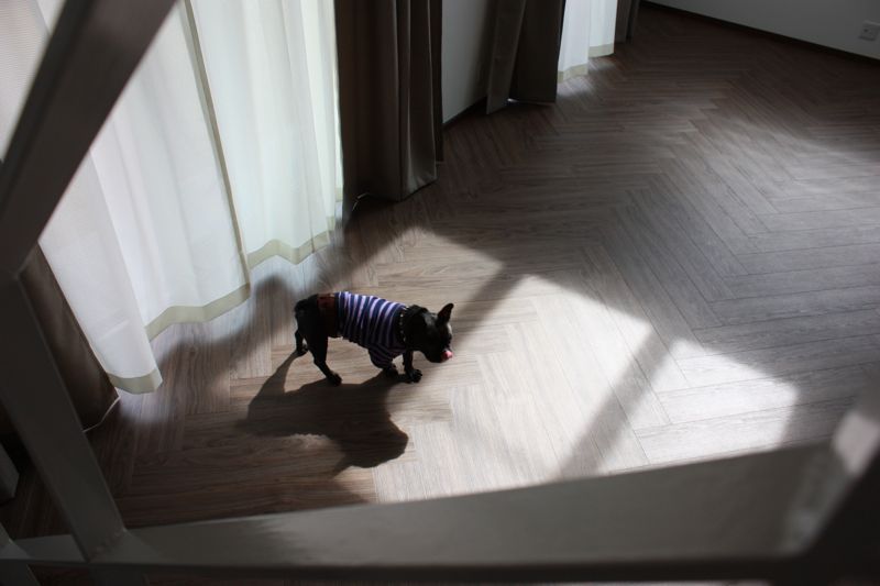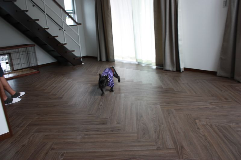 リビングのタイル、本当に茂吉は滑らないかの実験。