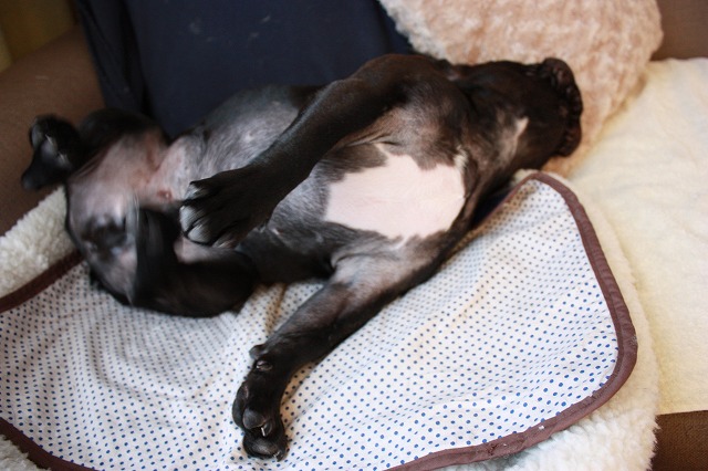 いつもより沢山食べて、満足した茂吉はゴロゴロ寛いでます。