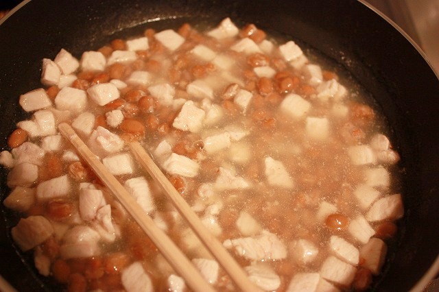 茂吉の好きな、納豆と鶏肉のコラボ。