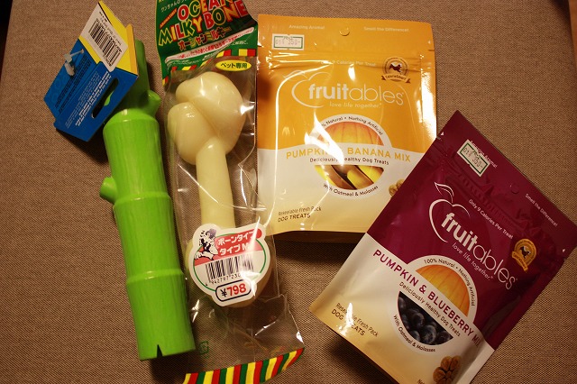 おもちゃ、ミルキーボーン、クッキー2袋。