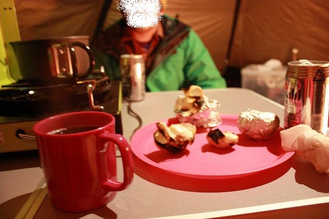 おつまみはホイルで包んで炭の中に投入してた、にんにく丸焼き。