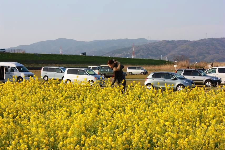 前回河川敷に行ったときに出会えなかった、菜の花畑がまさかの登場~