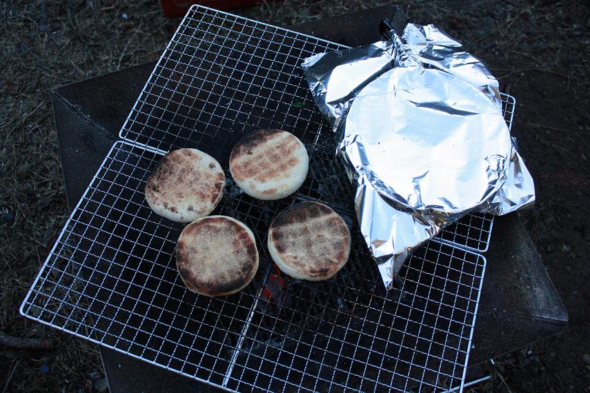 朝食が終わると、その辺に落ちてる枝を拾ってきて、鋸で切って、