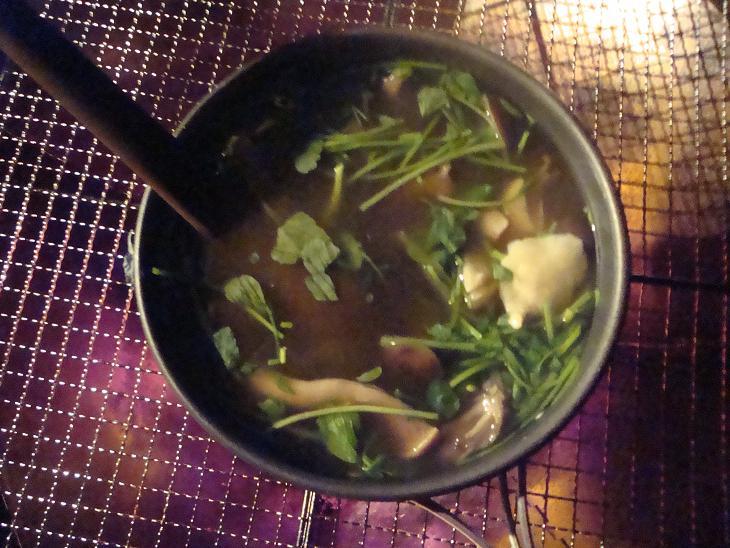 あの寝かせてた塊を、包丁で薄く削ってスープに投入していきます。