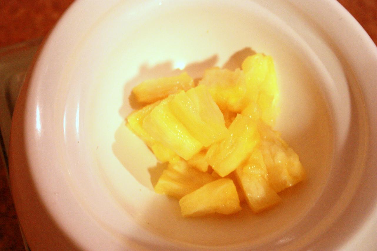 レンジで結構柔らかくなるまで加熱したから、一口サイズの角切りで。