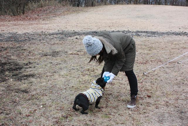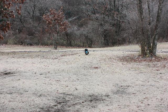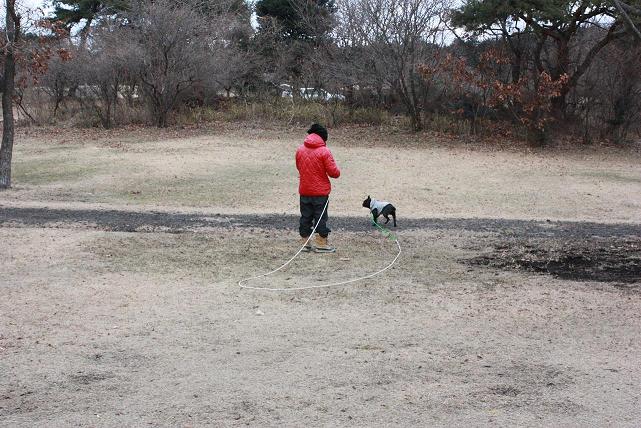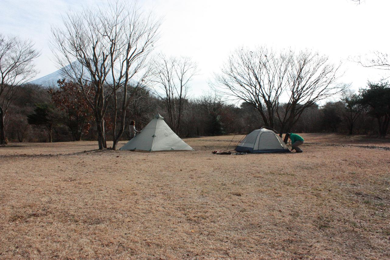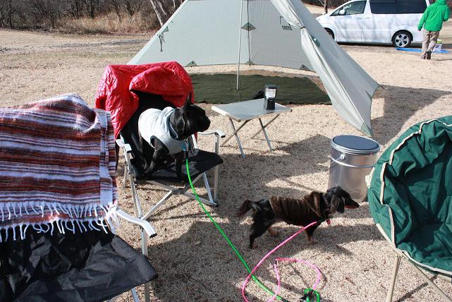 お邪魔なので、設営中は離れた所で待機してもらって…