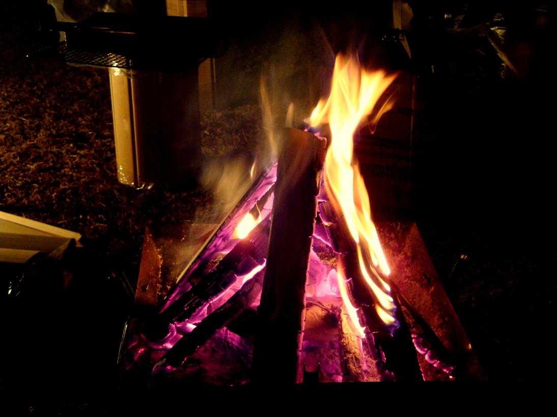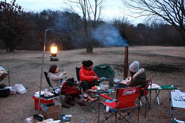 お腹もいっぱいになって、焚き火で暖をとり、就寝...
