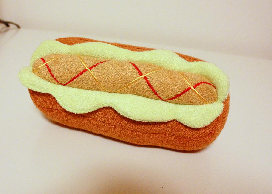 茂吉のお気に入り、ホットドッグのぬいぐるみ。