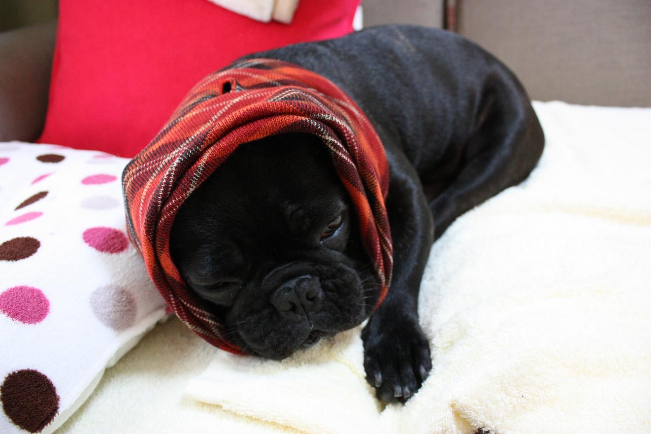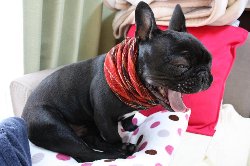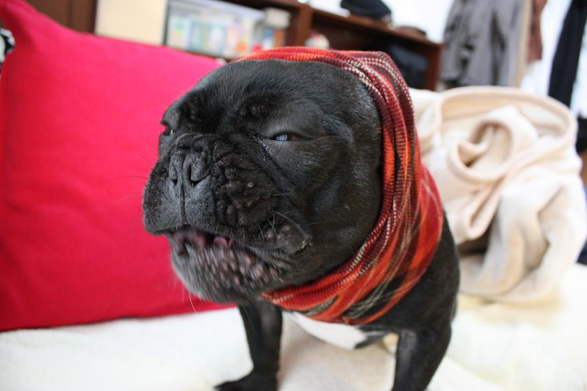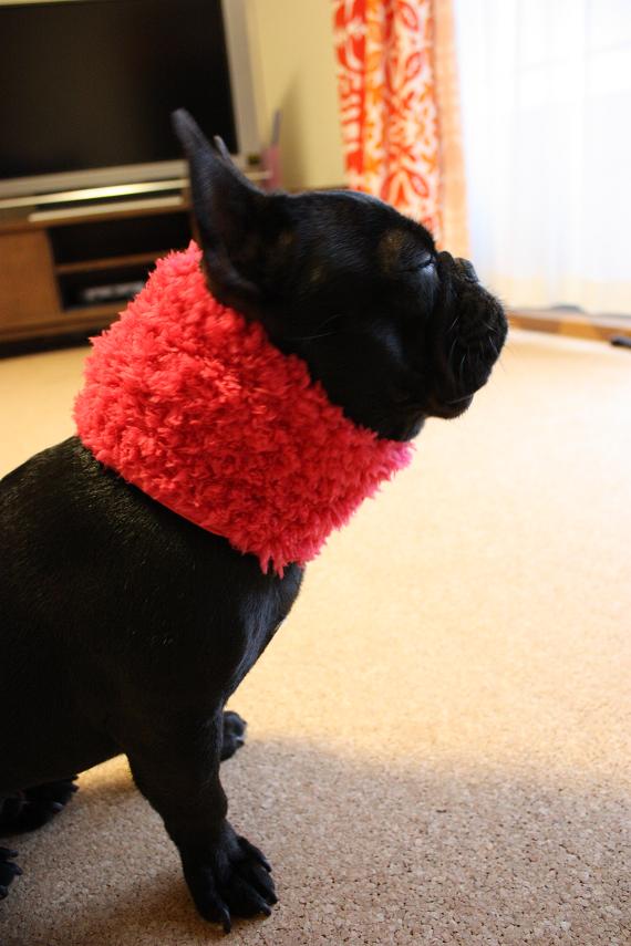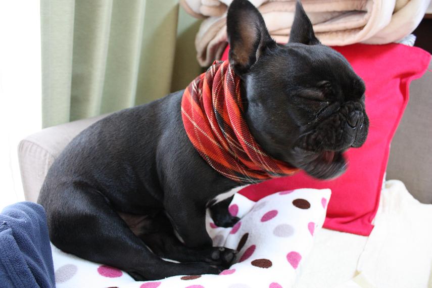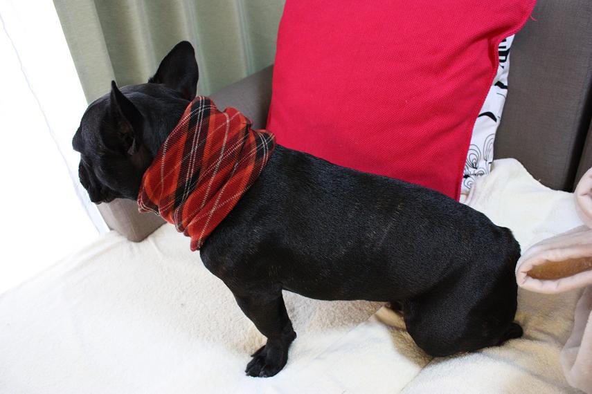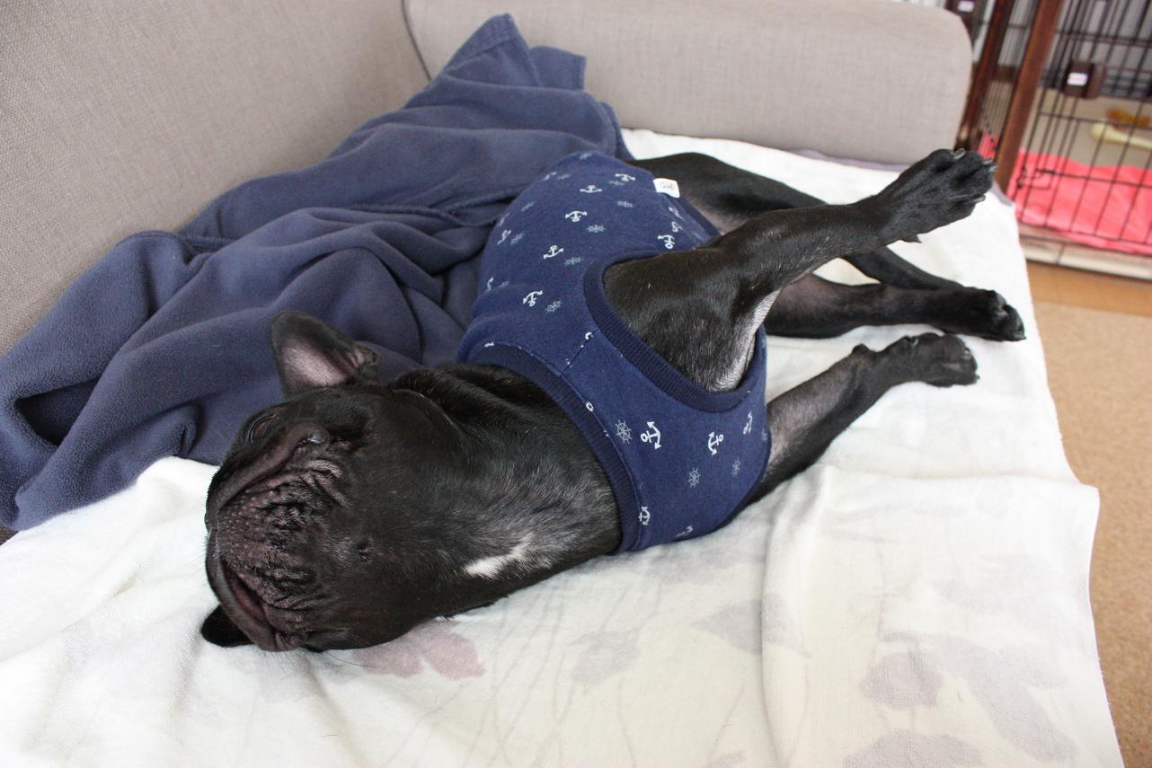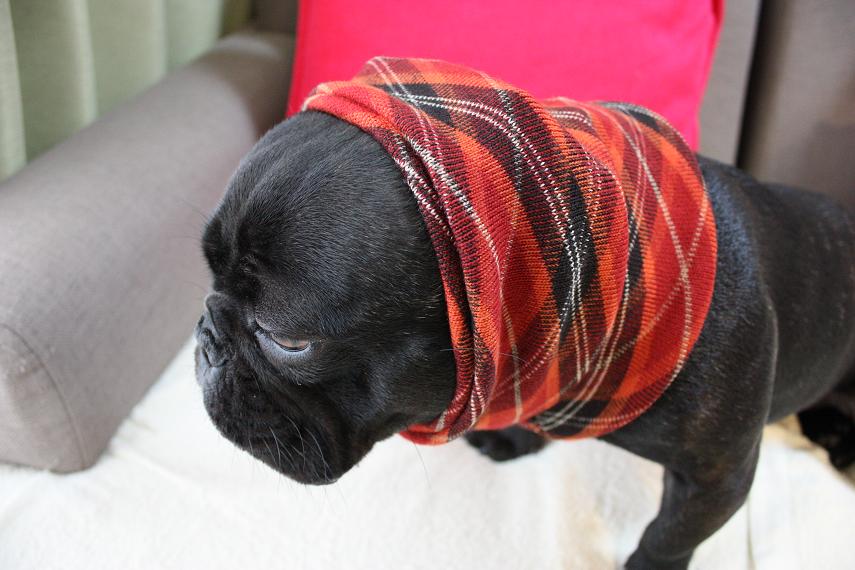 かなり伸びる素材だから、ワンコも楽チンのはず…真冬の寝るときの防寒にもOKだよね~