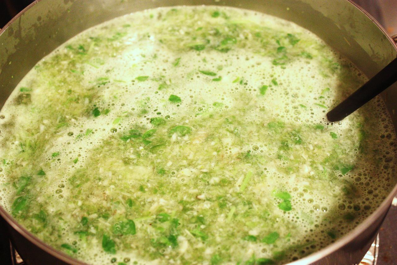 一応味見したら、キャベツの甘みで見た目よりは青臭くないかな…