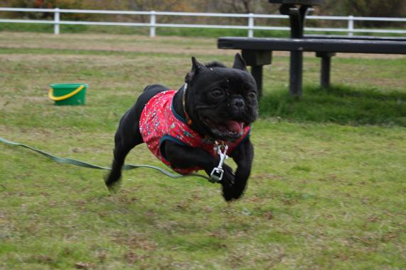 のわちゃんはフリー、茂吉は呼んで戻ってくる自信がないから、超ロングリードで。